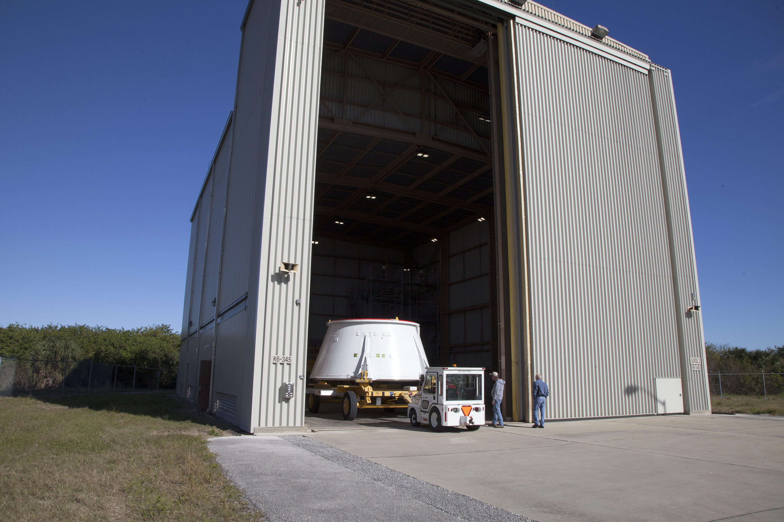 An aft skirt similar to one that will be used on a solid rocket booster (SRB) that will help launch NASA’s Space Launch System (SLS) rocket into space was transported from the Booster Fabrication Facility to the Rotation, Processing and Surge Facility (RPSF) at the agency’s Kennedy Space Center in Florida.